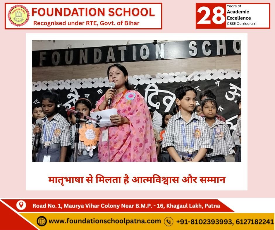 आज हमारी प्रार्थना सभा में नन्हे बच्चों ने अपनी मातृभाषा के सम्मान में अद्भुत प्रस्तुतियाँ दीं। कक्षा नर्सरी से कक्षा 2 तक के बच्चों ने गीत, कविता और नाट्य प्रदर्शन के माध्यम से हिंदी का गौरव बढ़ाया। विशेष आभार हमारे संगीत शिक्षक शशि सर और सभी शिक्षिकाओं का, जिन्होंने इस कार्यक्रम को सफल बनाया। हमारी मातृभाषा हमारी पहचान है