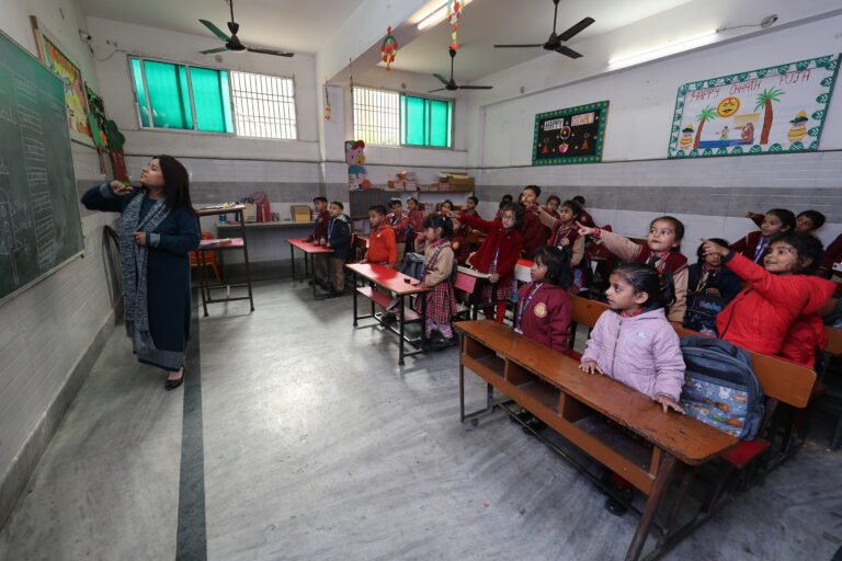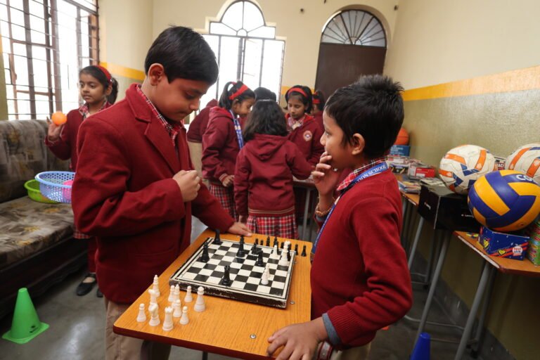 The school’s activity room is a well-equipped space designed to make learning interactive and enjoyable. It features a smart class where students watch educational videos, including cartoons, moral stories, phonics, action songs, and word power exercises. These resources enhance comprehension and vocabulary during circle time. Additionally, students practice public speaking using microphones, boosting their communication and confidence. The activity room encourages collaborative learning and sharing of experiences, fostering essential skills like teamwork and effective communication. This space serves as a motivational platform, promoting positive behavior and making learning fun, engaging, and impactful for children.