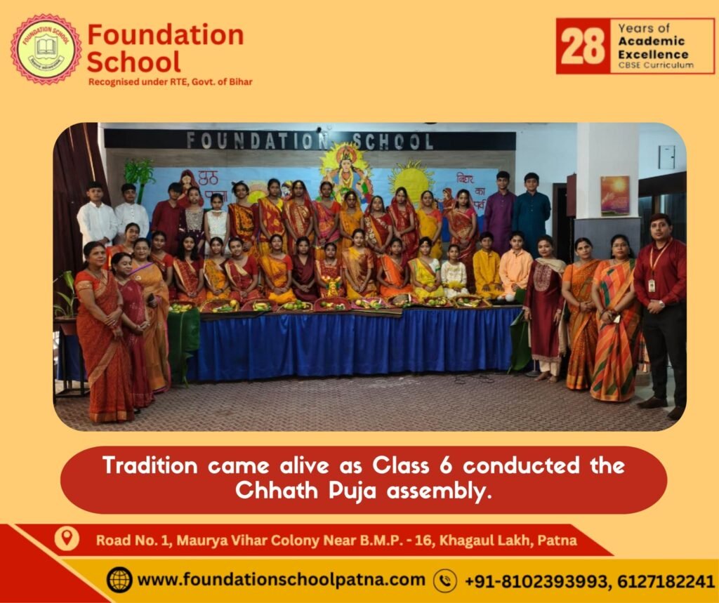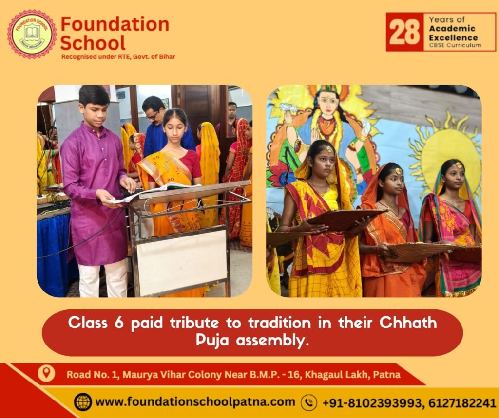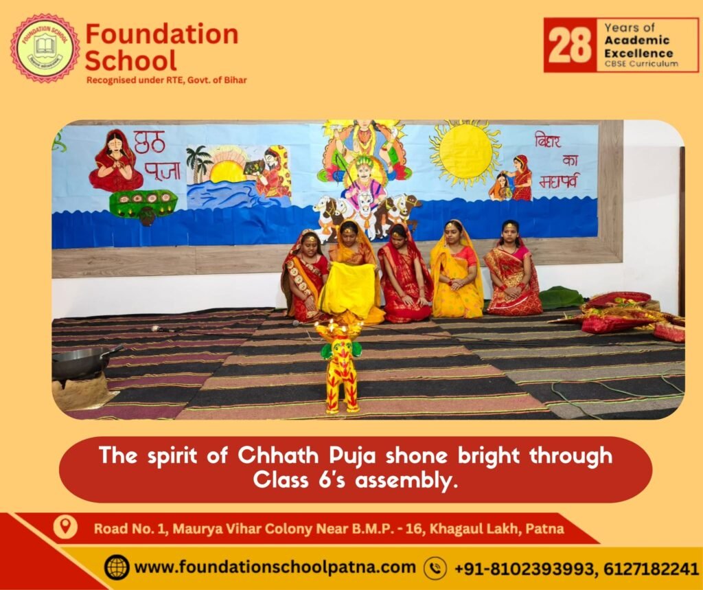 Class 6 brought the spirit of Chhath Puja alive today with a vibrant assembly celebrating tradition, devotion, and culture.