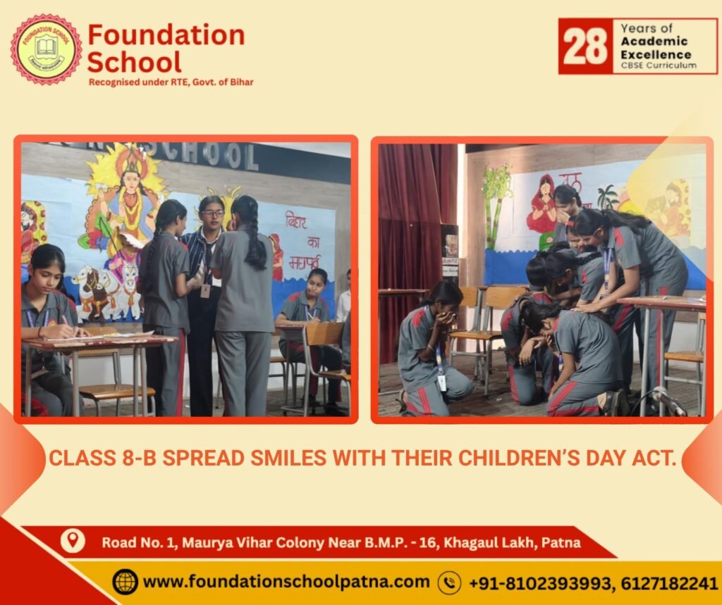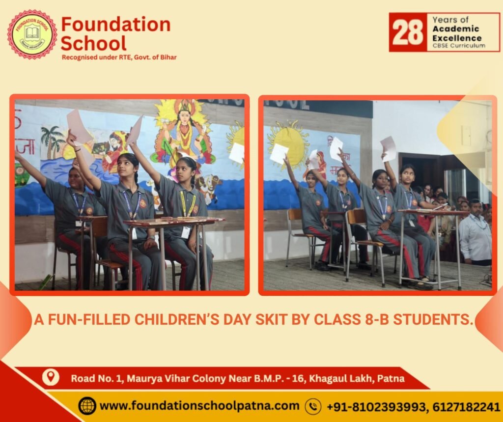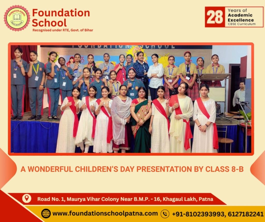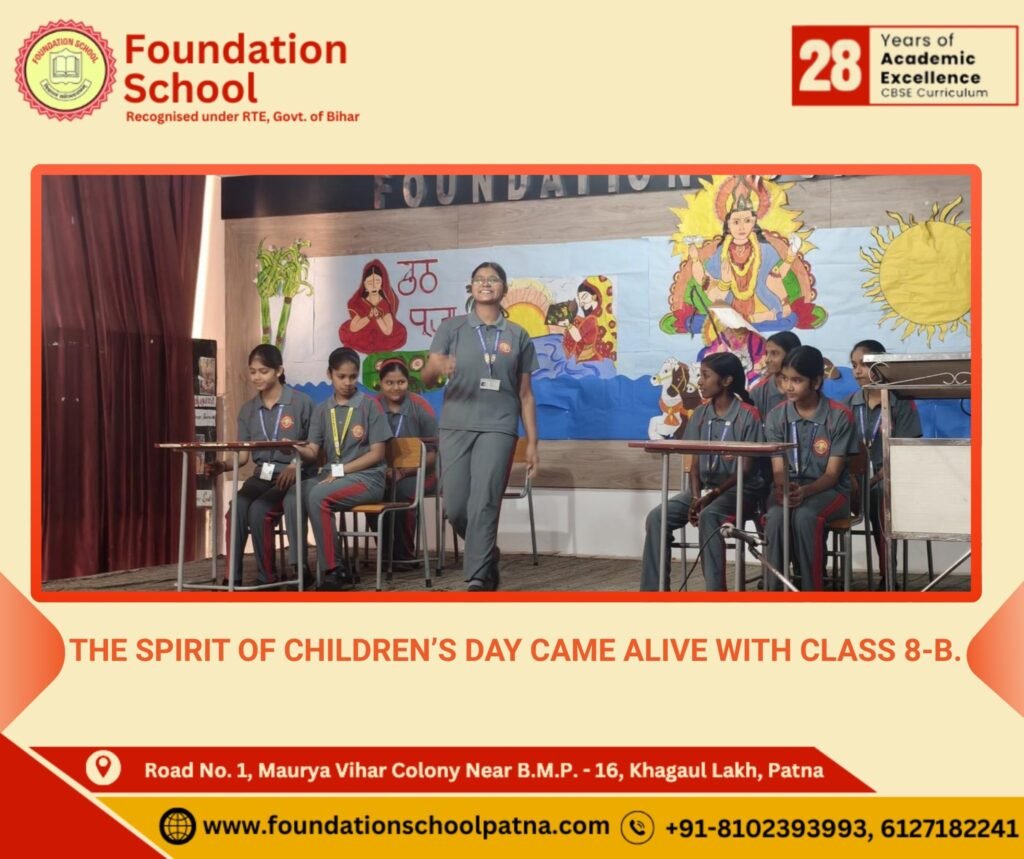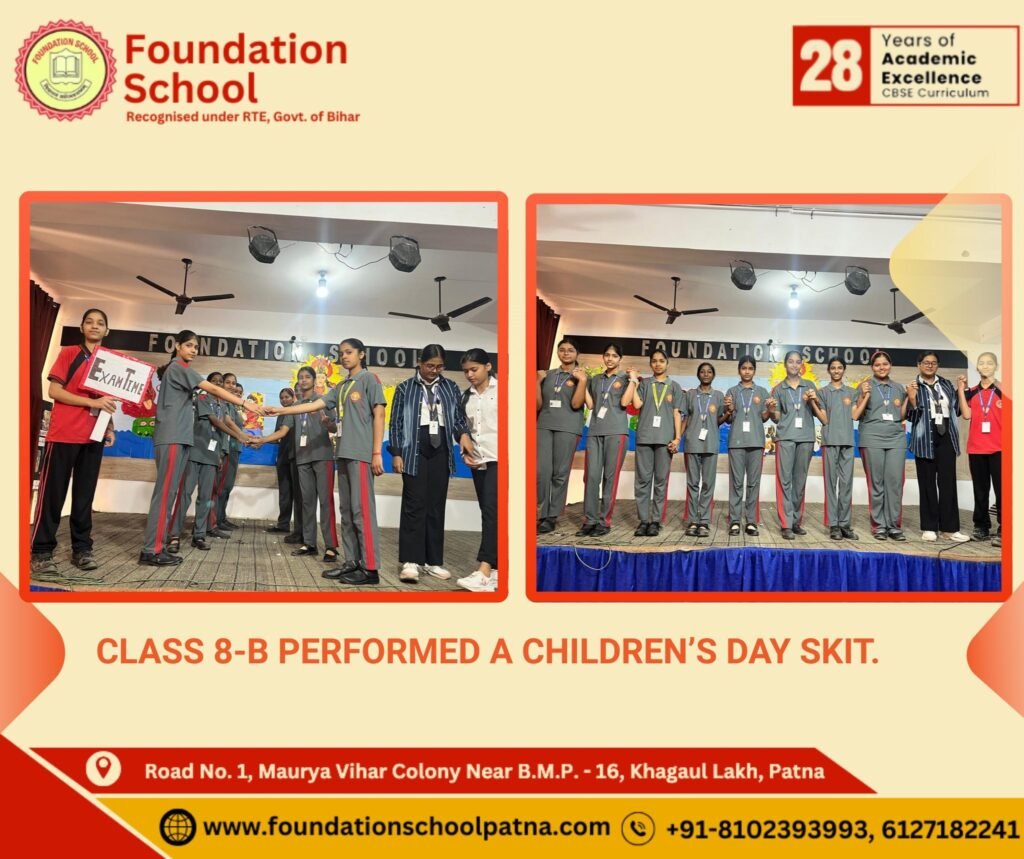 Today’s morning assembly was filled with devotion, joy, and vibrant energy. The students of Class 8-B presented a graceful Saraswati Vandana, invoking blessings of wisdom and learning, followed by a lively Children’s Day skit that beautifully celebrated knowledge, creativity, and the true essence of childhood.
